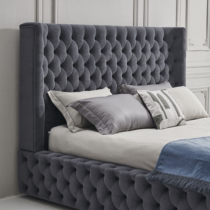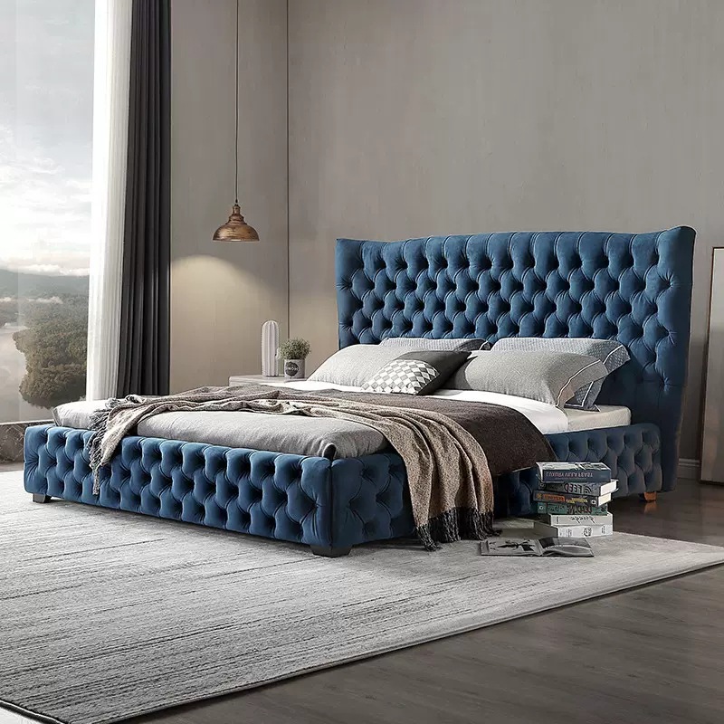 Product DescriptionNew Contemporary Design High End Luxury Soft Fabric r Double Bed Super King Size Bed Frame for villa