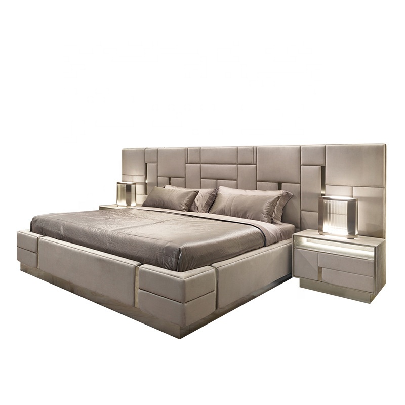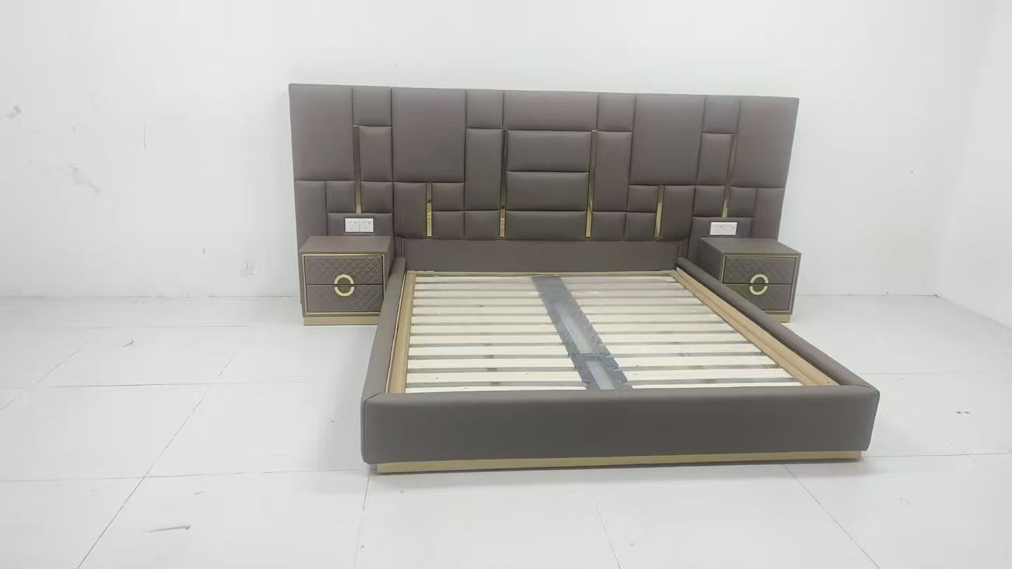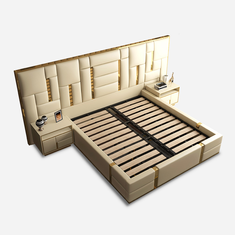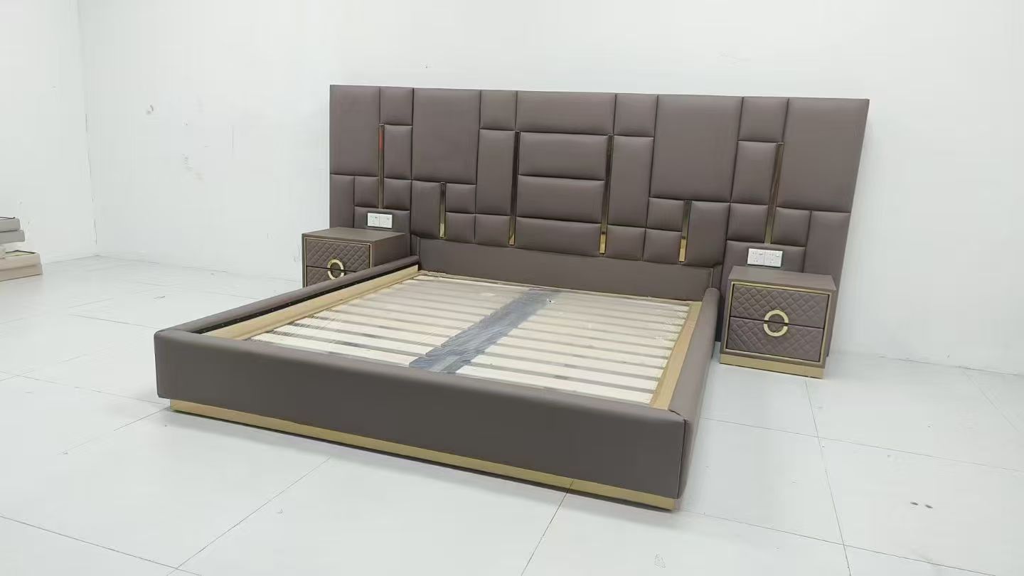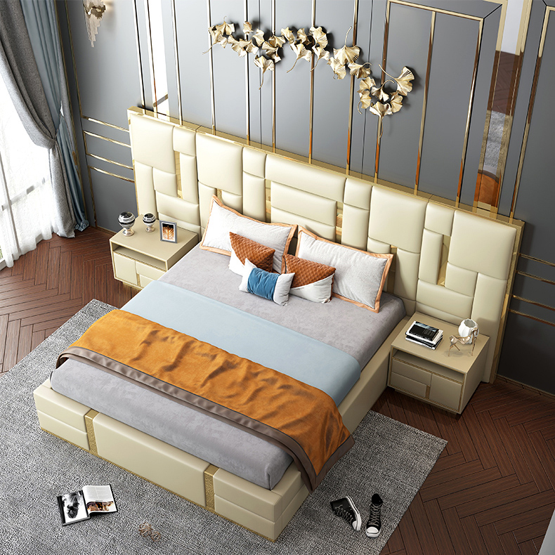 CEO Furniture Factory Custom Italian Latest Luxury Bedroom Furniture High Quality Leather Large Double Bed Long Head Luxury Modern King Size Bed