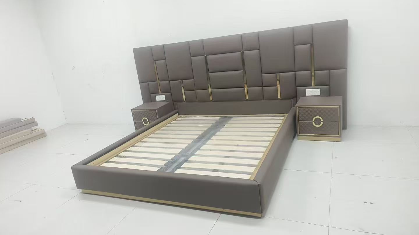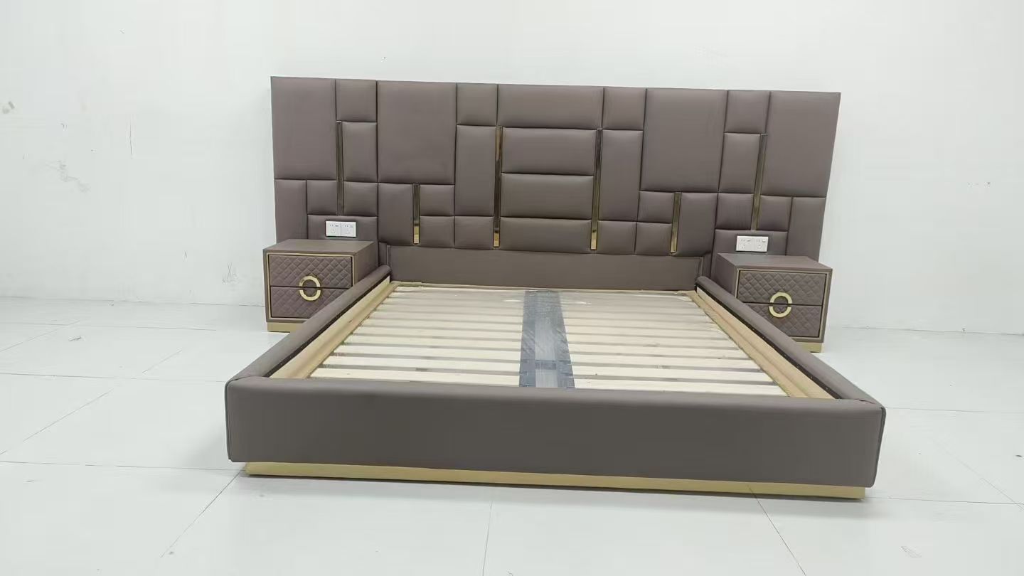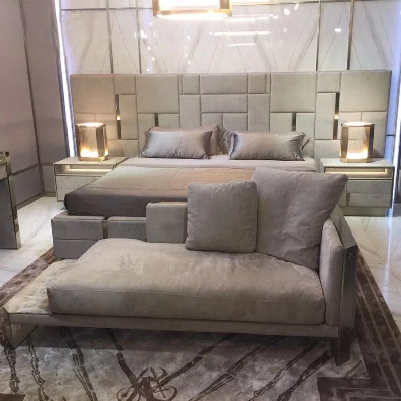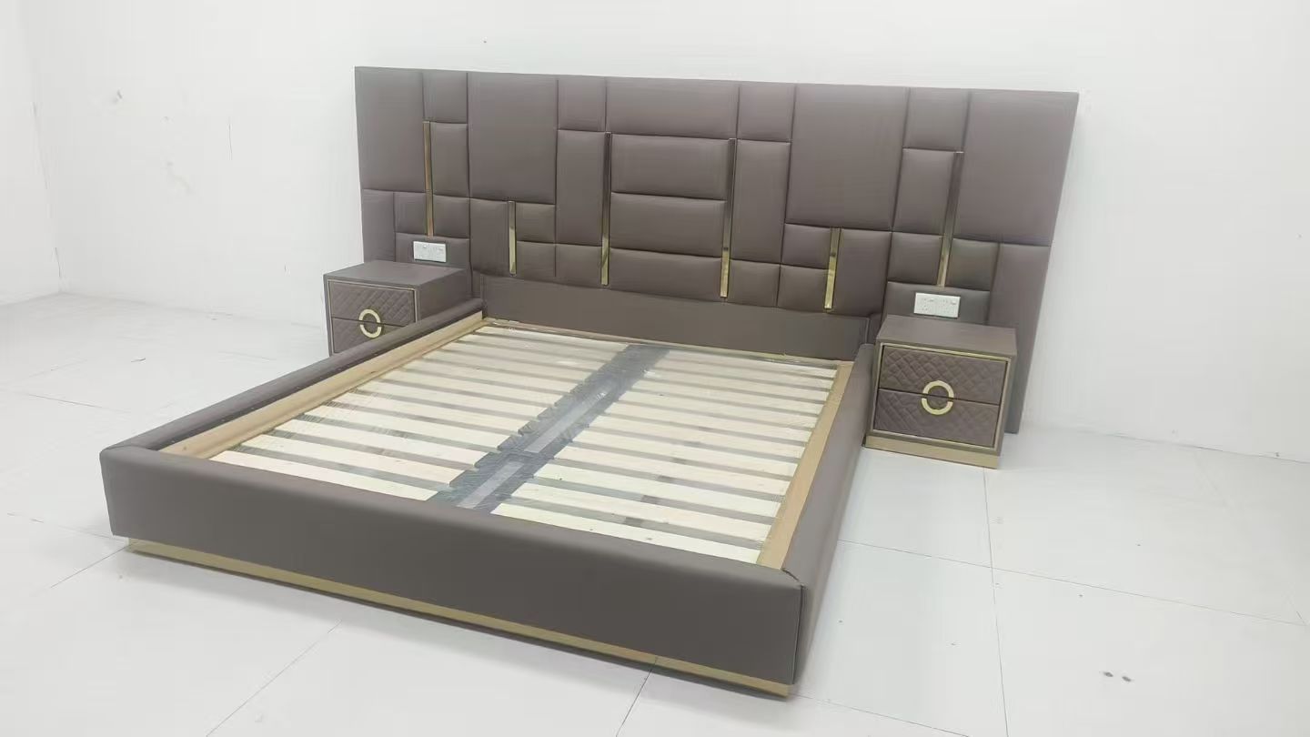 CEO Furniture Factory Custom Italian Latest Luxury Bedroom Furniture High Quality Leather Large Double Bed Long Head Luxury Modern King Size Bed