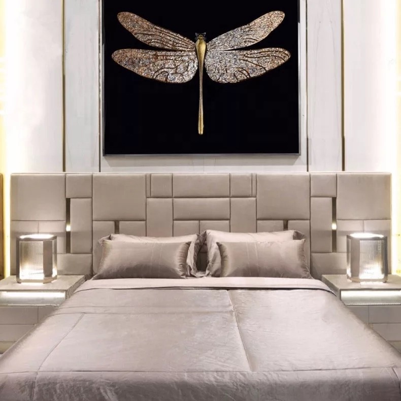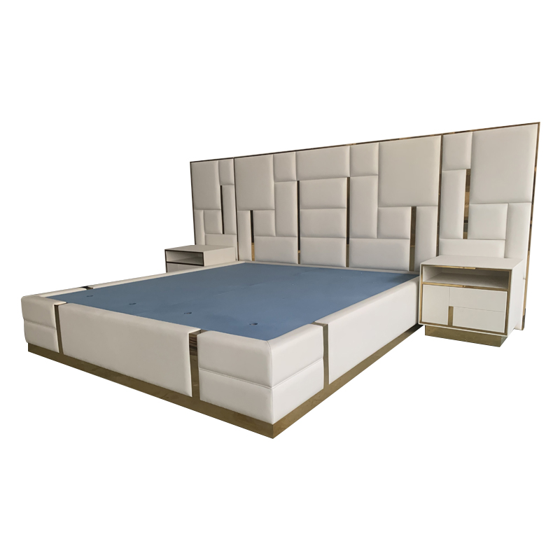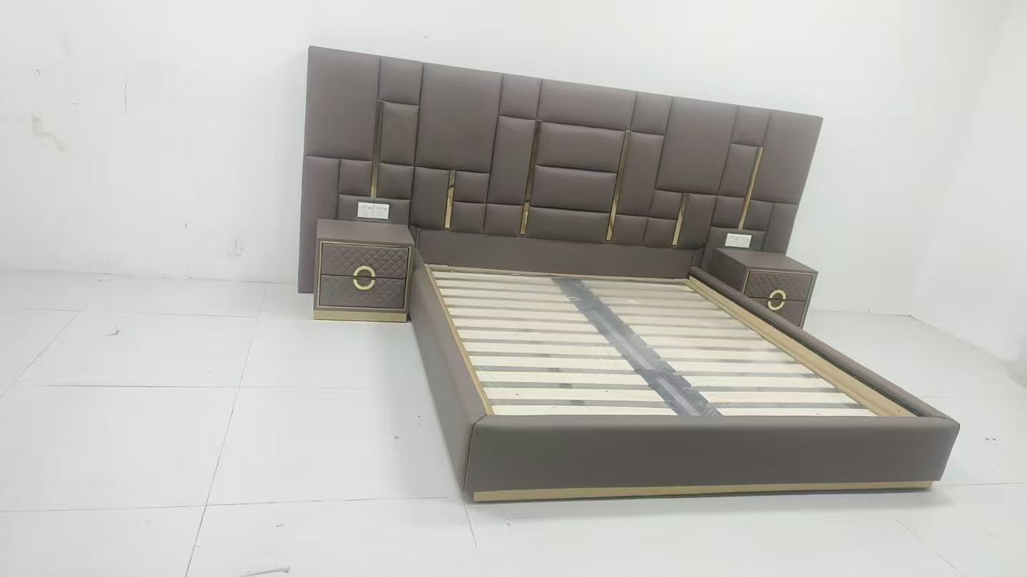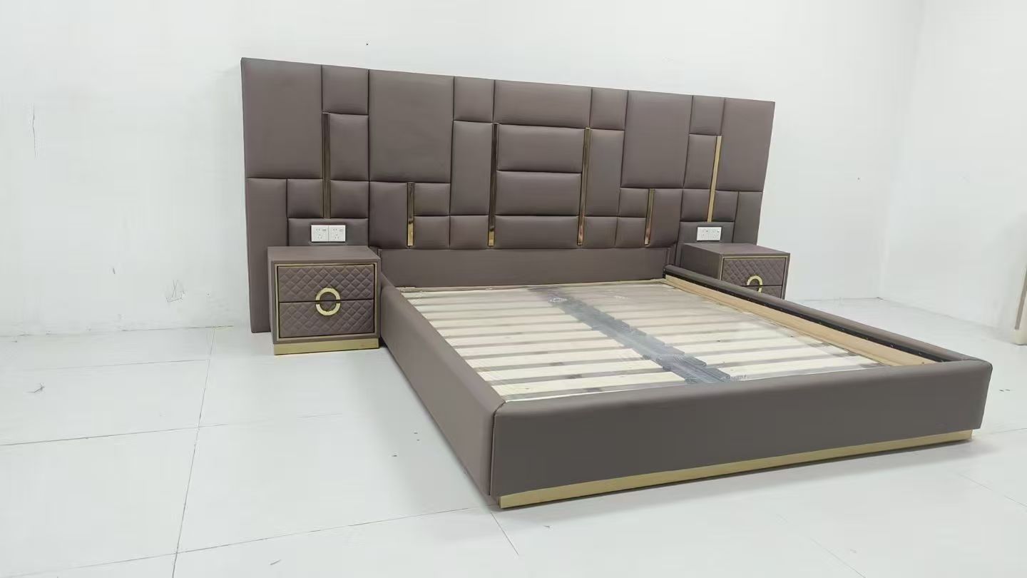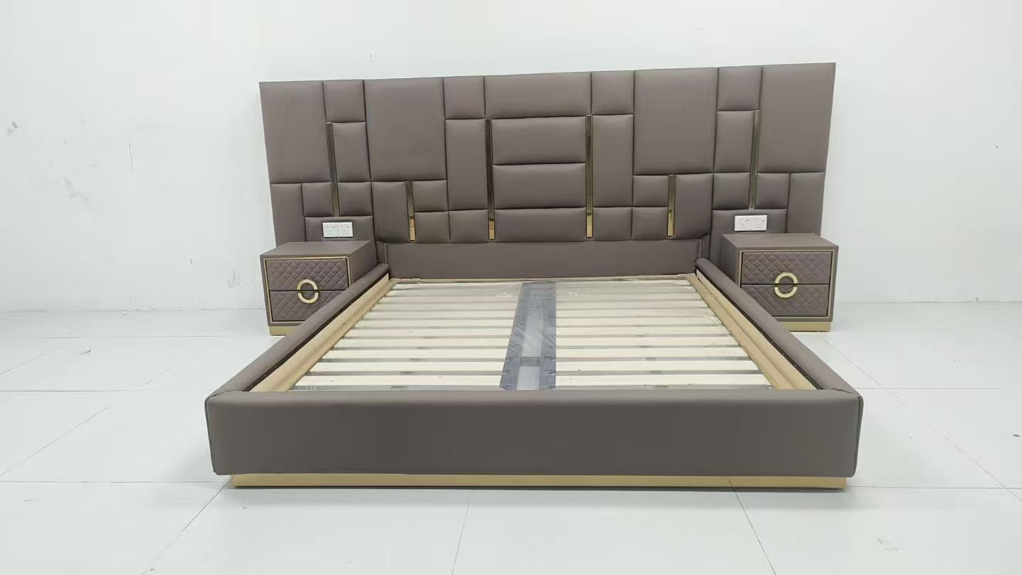 CEO Furniture Factory Custom Italian Latest Luxury Bedroom Furniture High Quality Leather Large Double Bed Long Head Luxury Modern King Size Bed