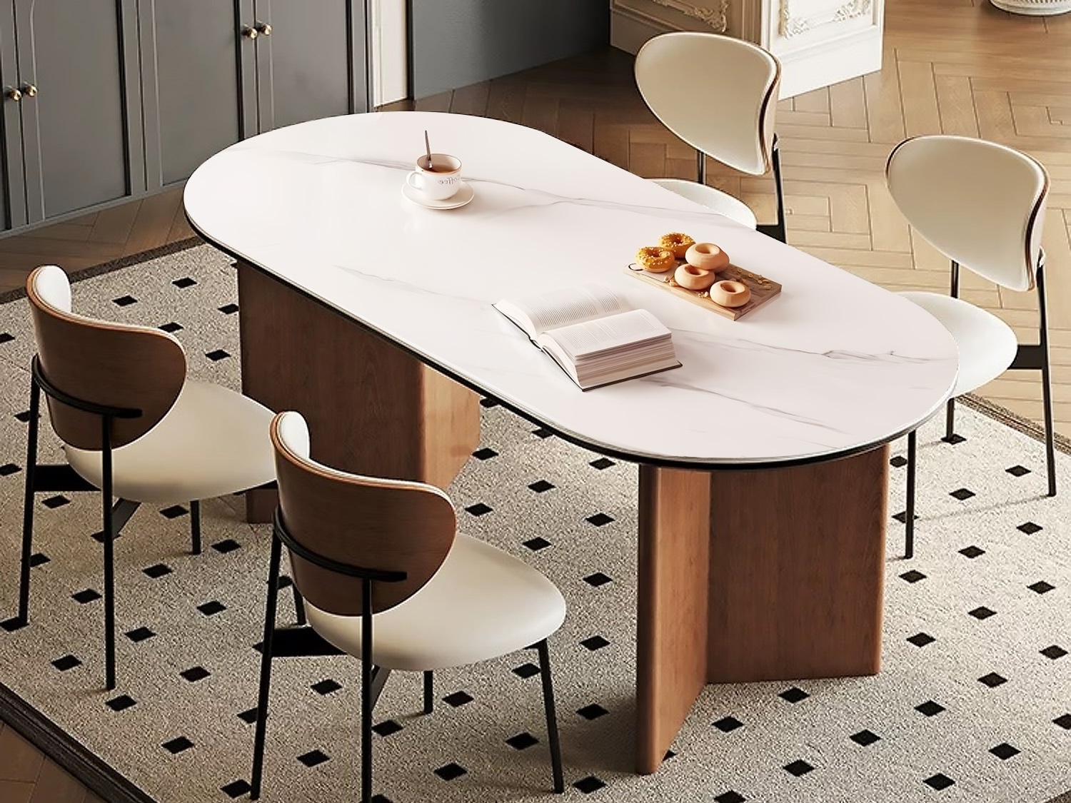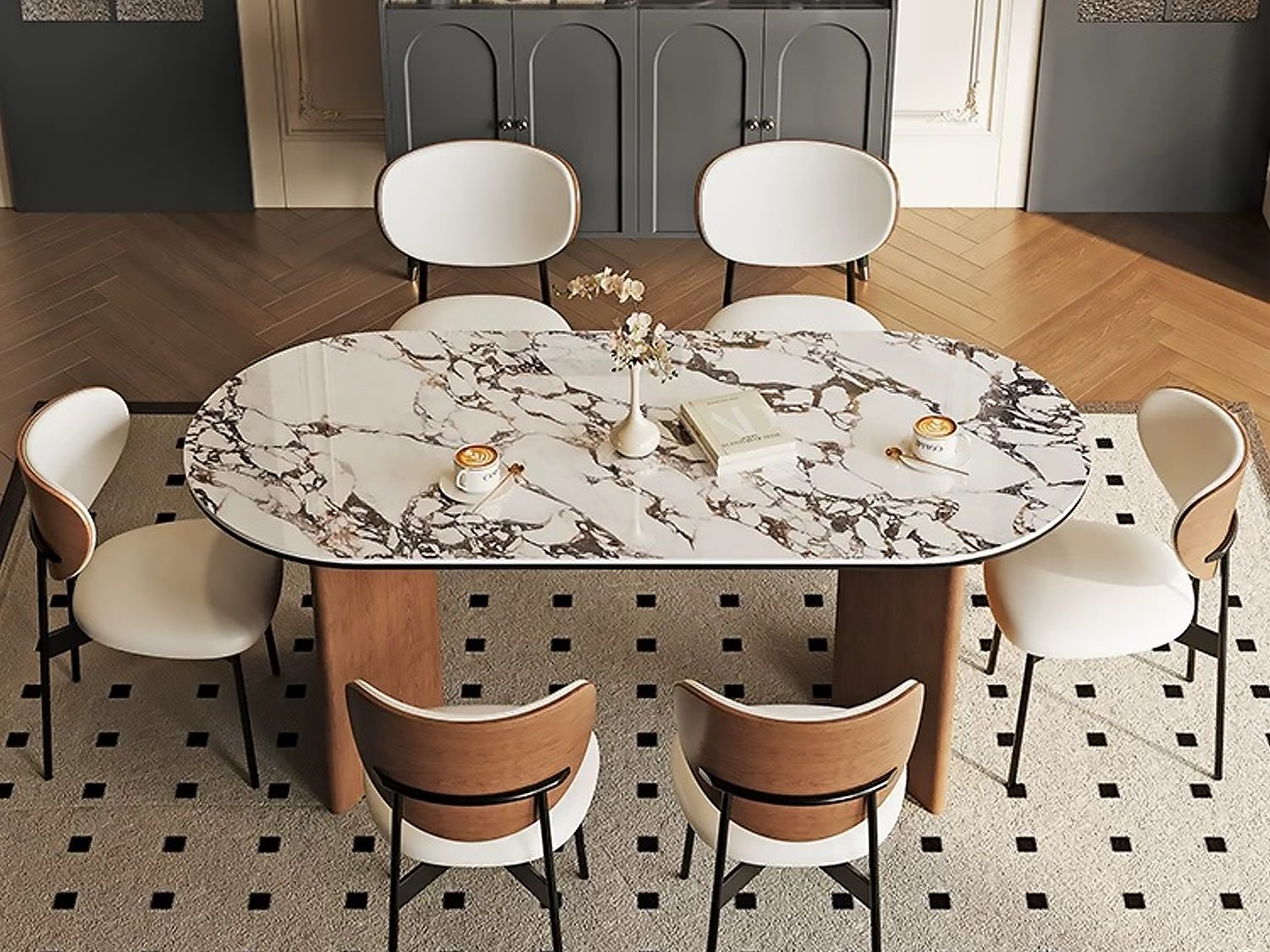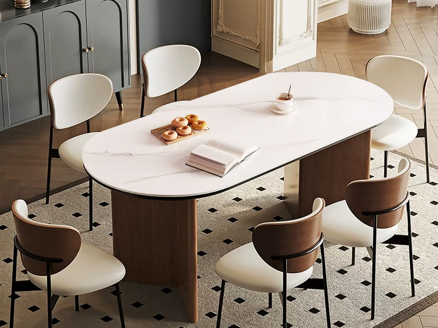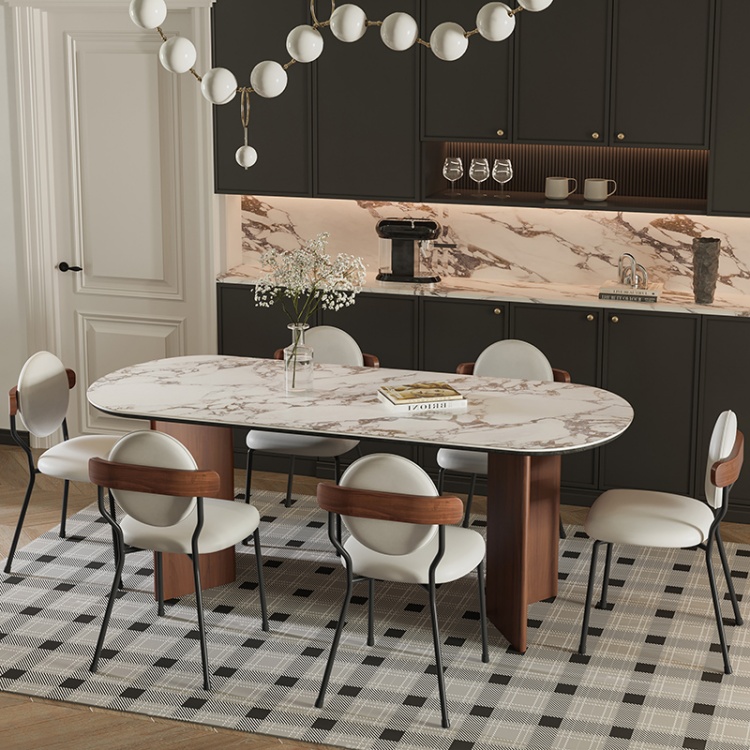 CEO Furniture Factory Nordic Solid Wood Rock Plate Dining Table Modern Simple Home Ash Wind Rectangular Walnut Color Dining Table