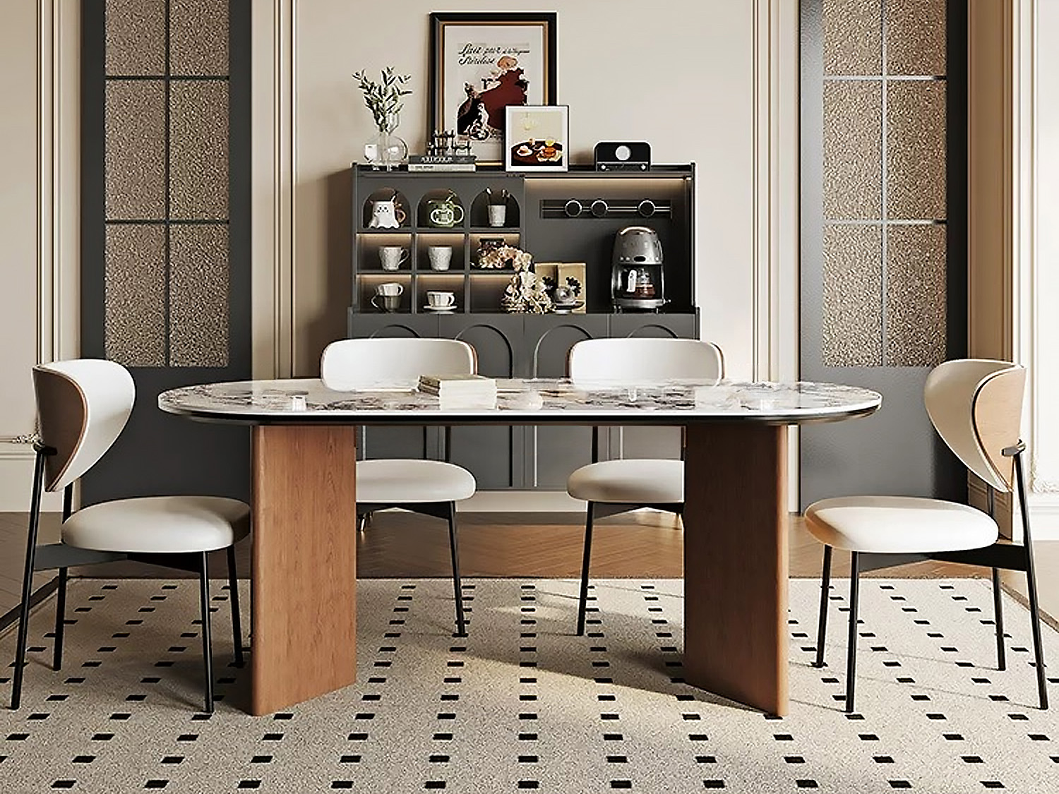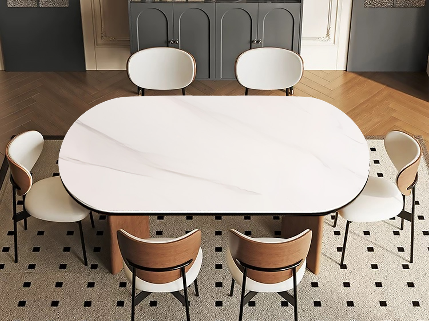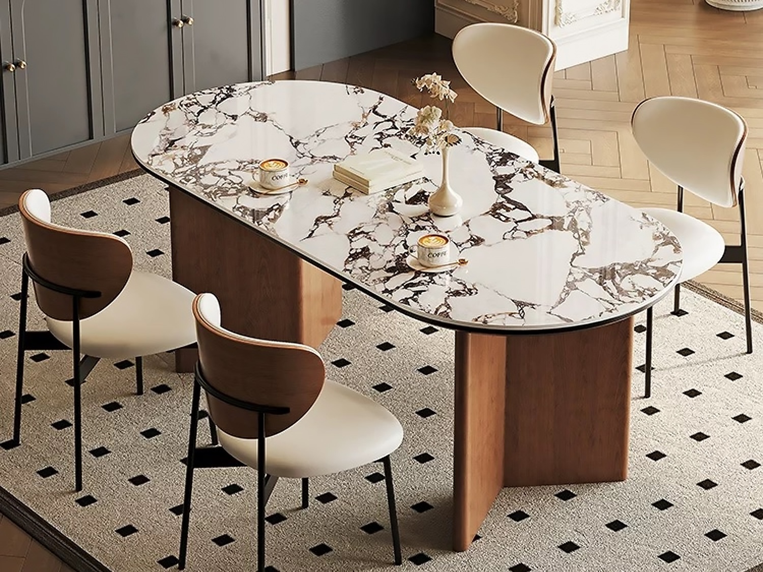 CEO Furniture Factory Nordic Solid Wood Rock Plate Dining Table Modern Simple Home Ash Wind Rectangular Walnut Color Dining Table