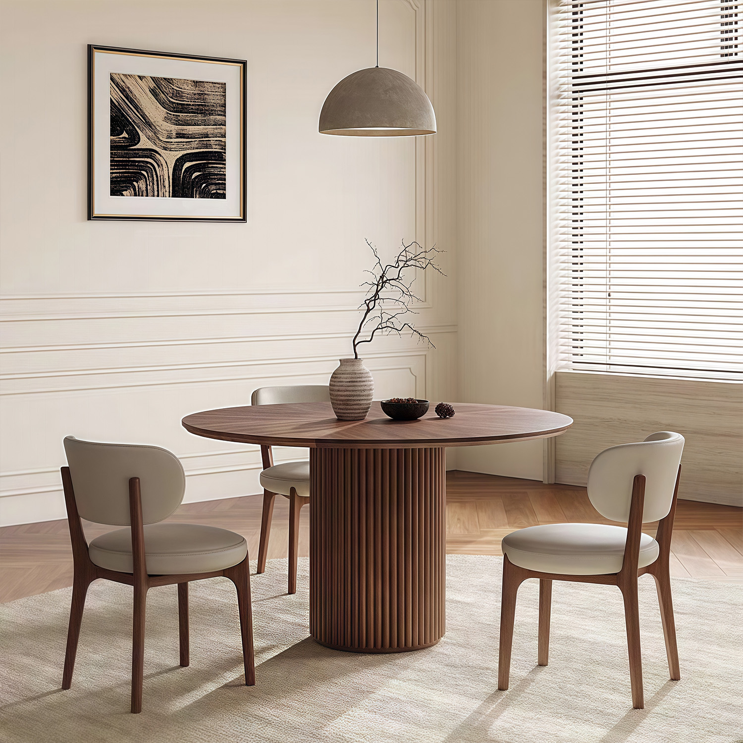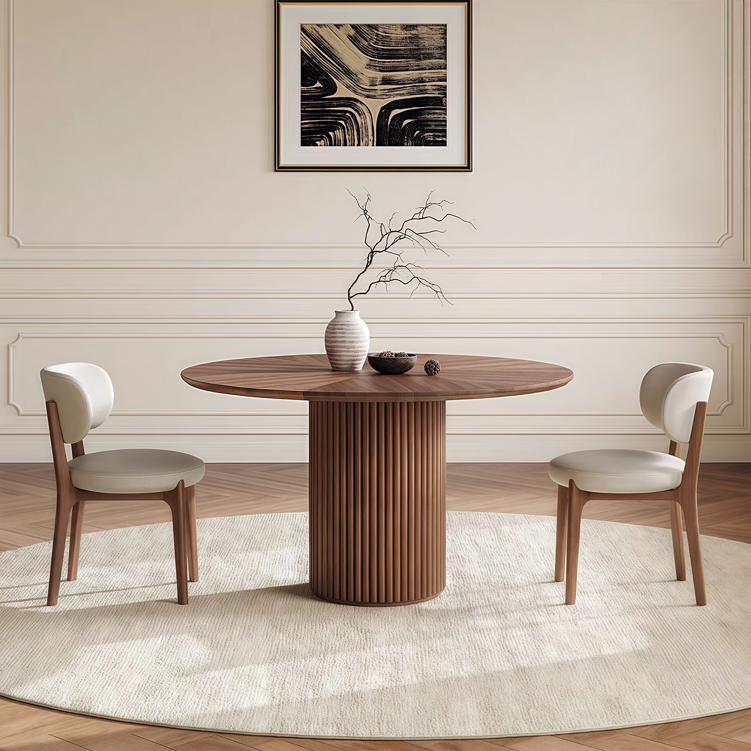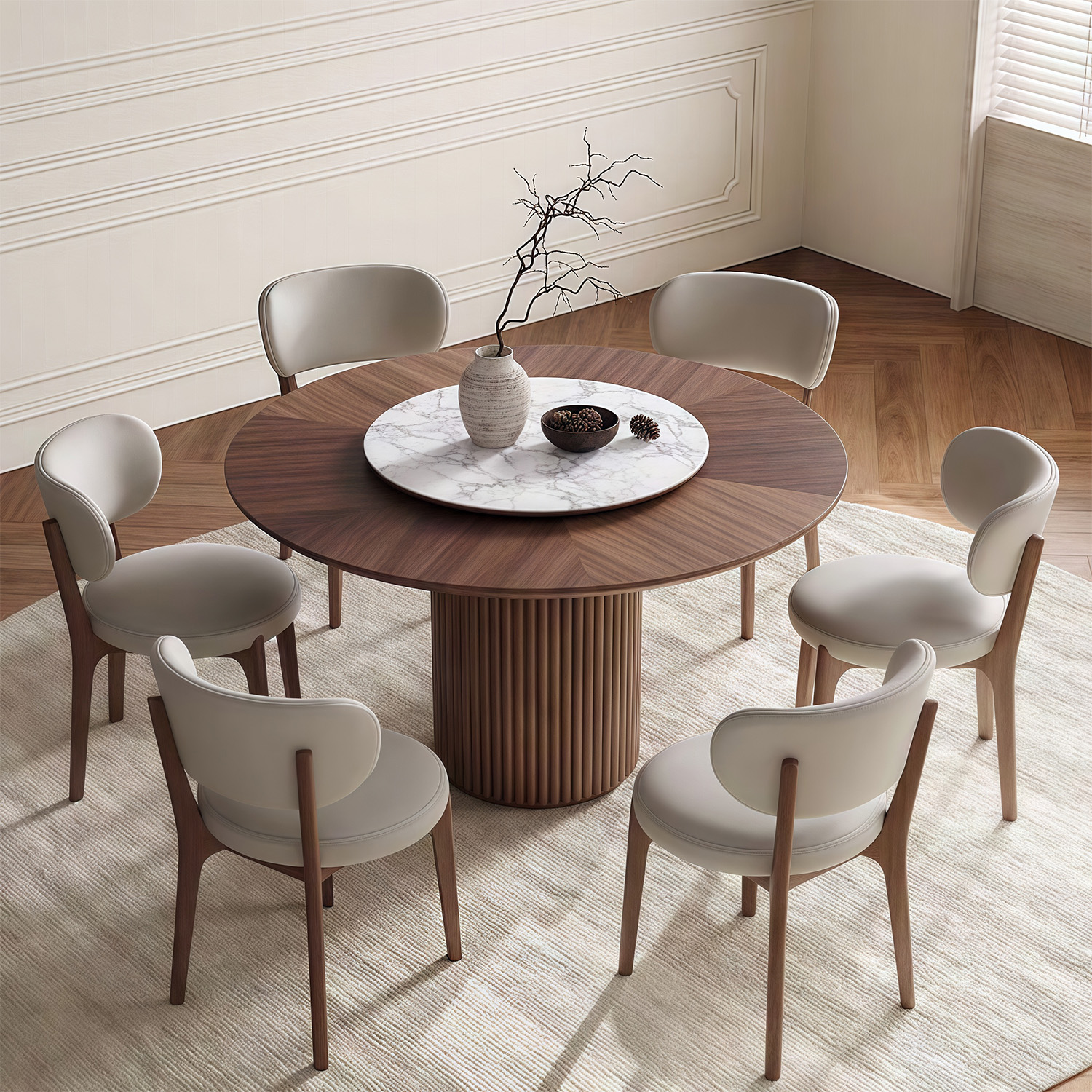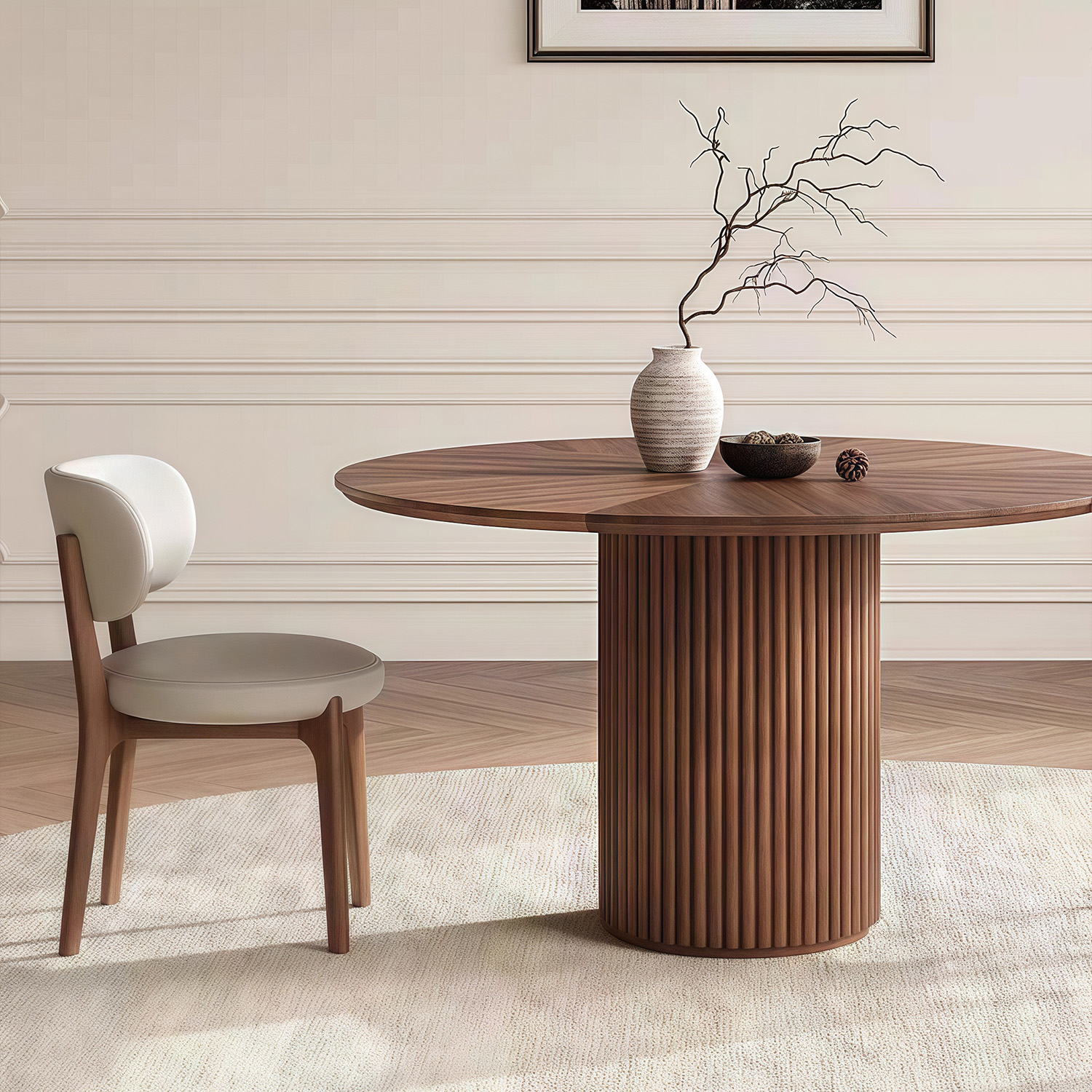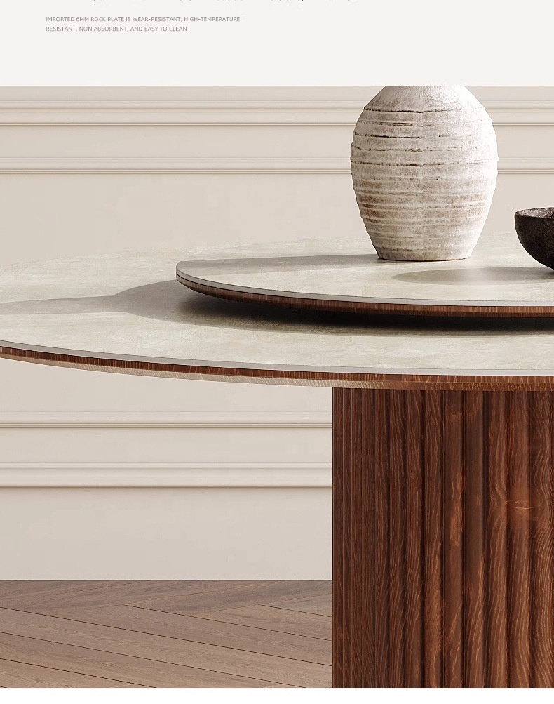 Nordic simple dining room wood frame dining table designer style luxury hotel villa round walnut dining table and chair set