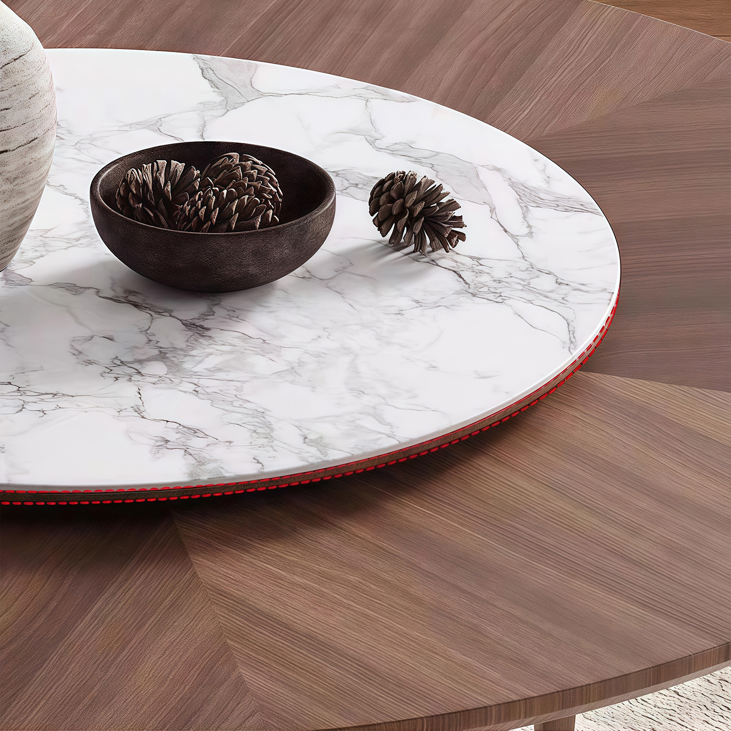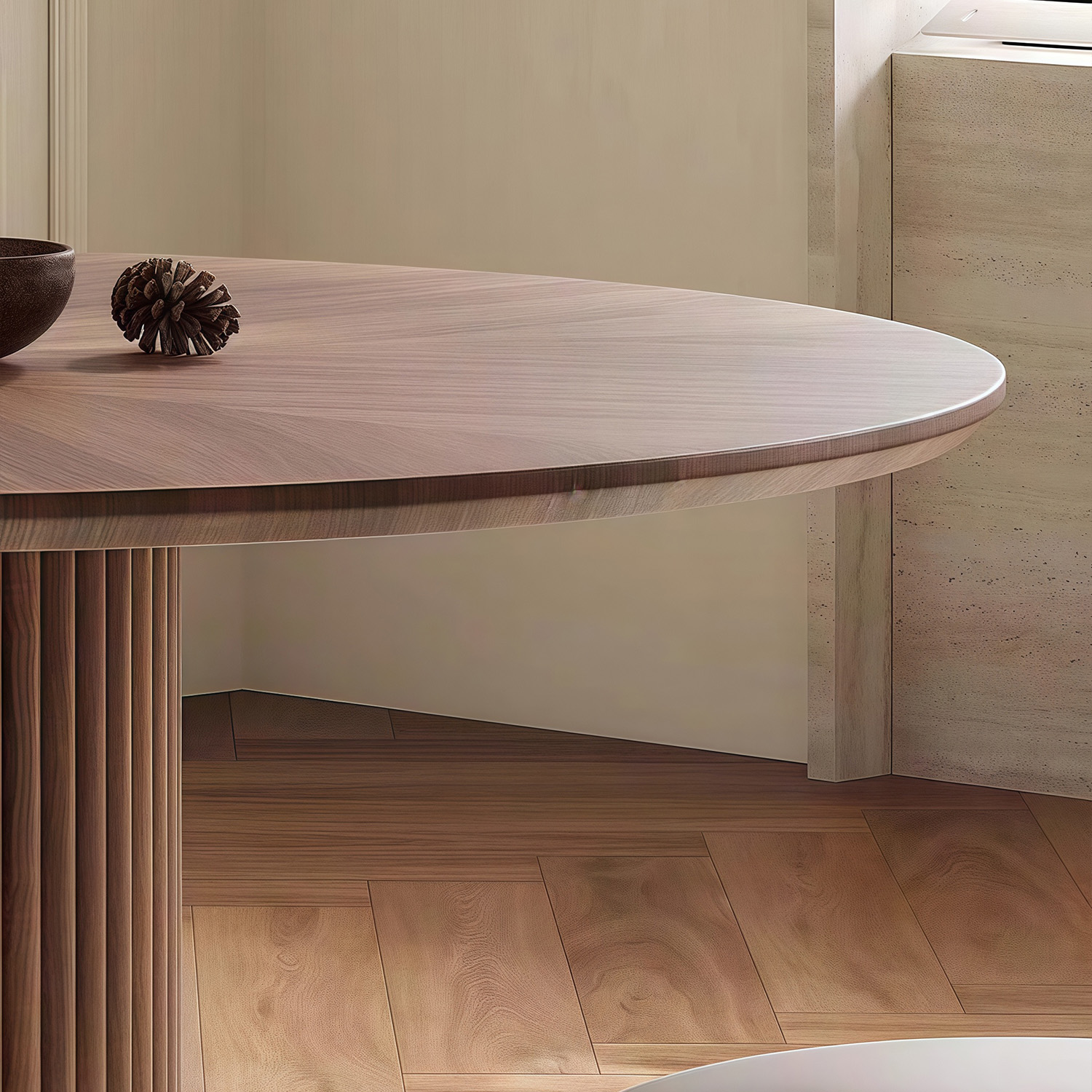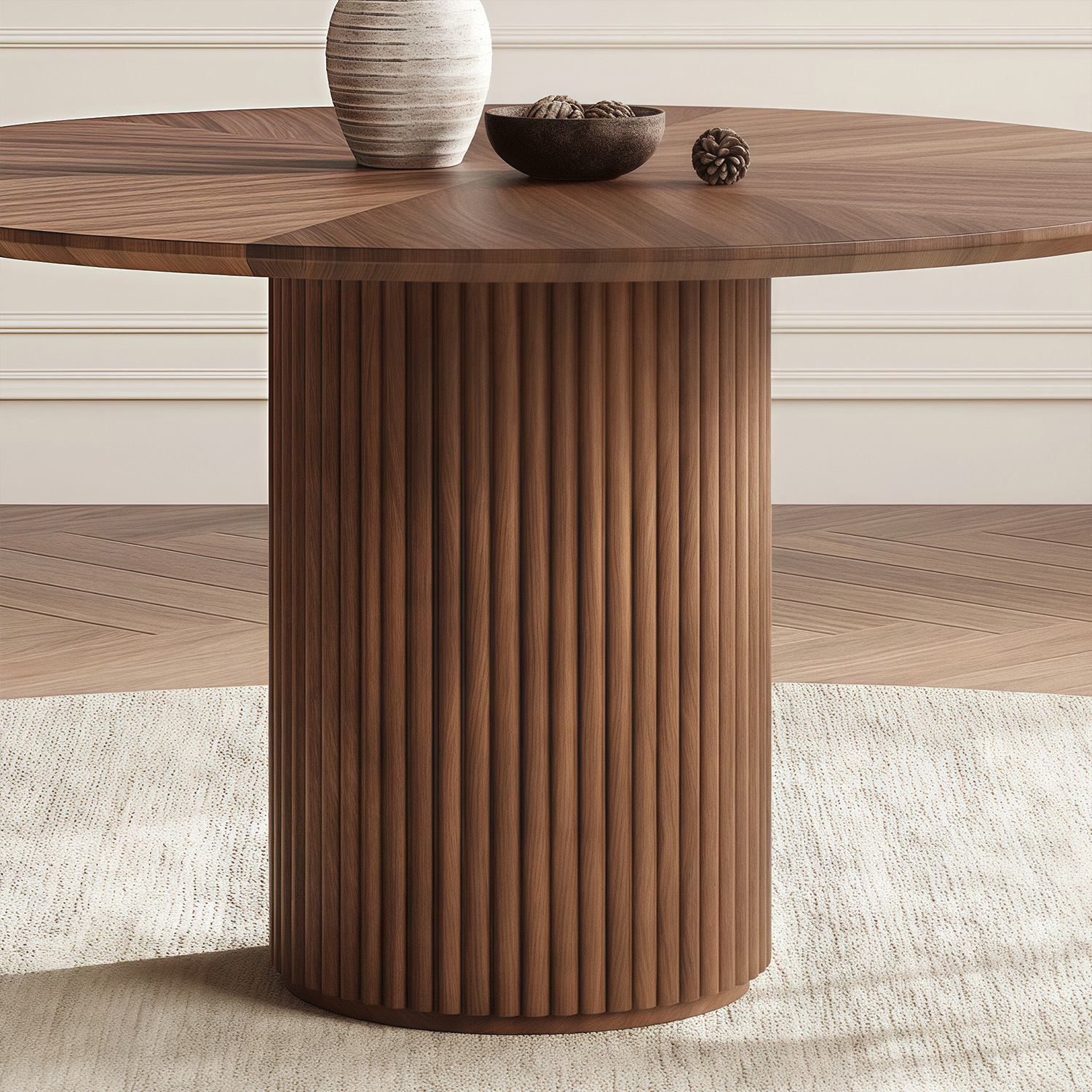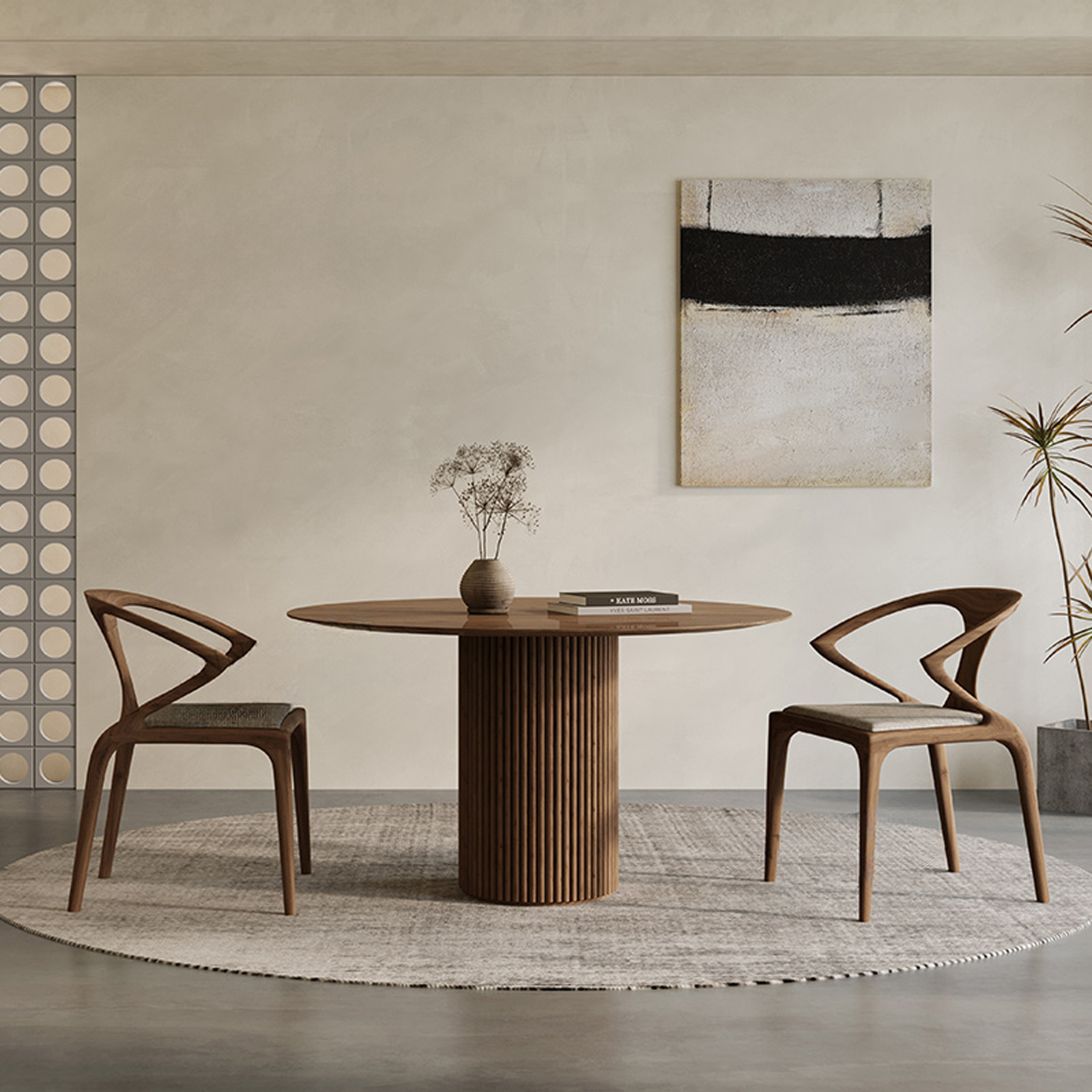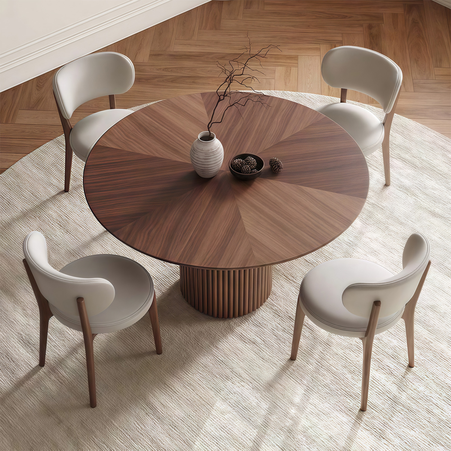 Nordic simple dining room wood frame dining table designer style luxury hotel villa round walnut dining table and chair set