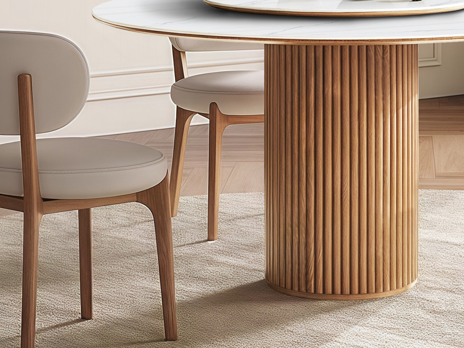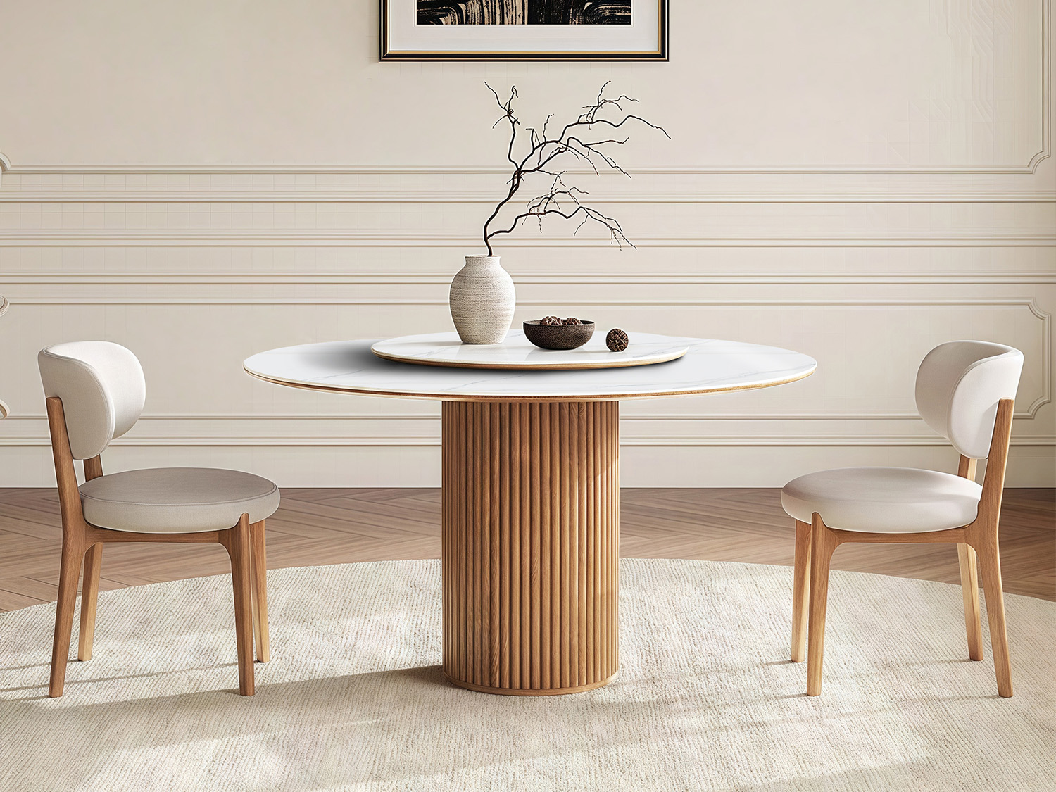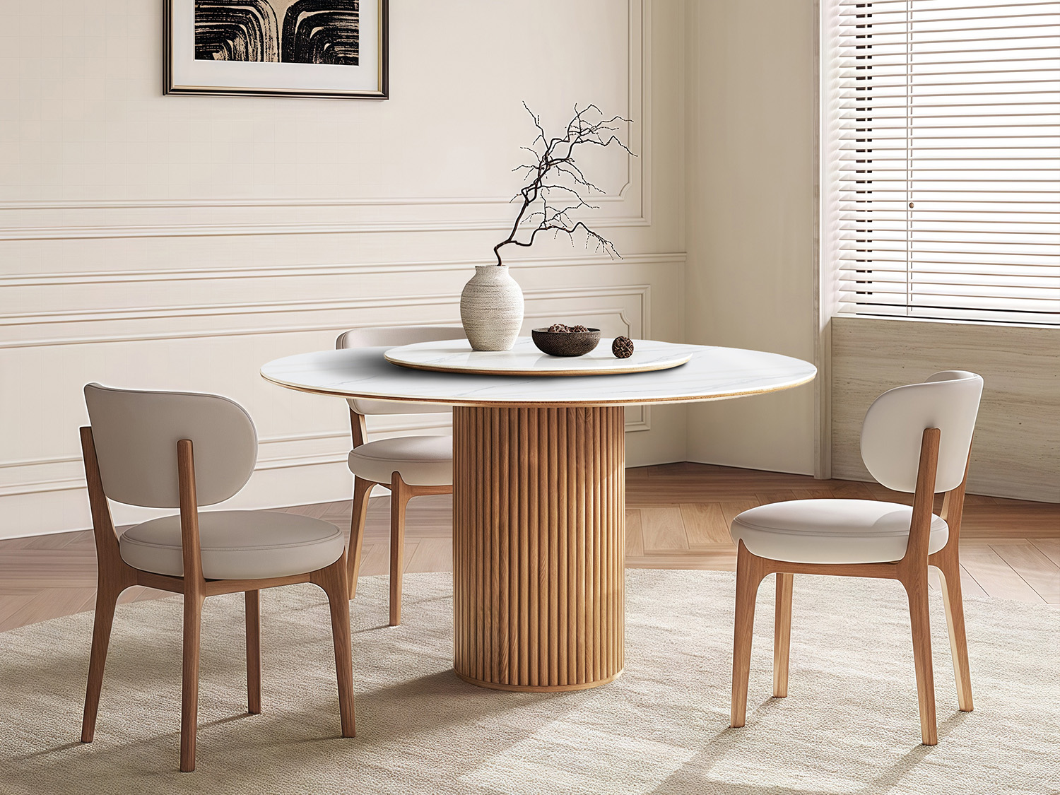 Nordic simple dining room wood frame dining table designer style luxury hotel villa round walnut dining table and chair set