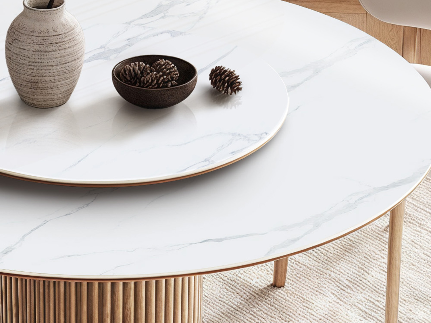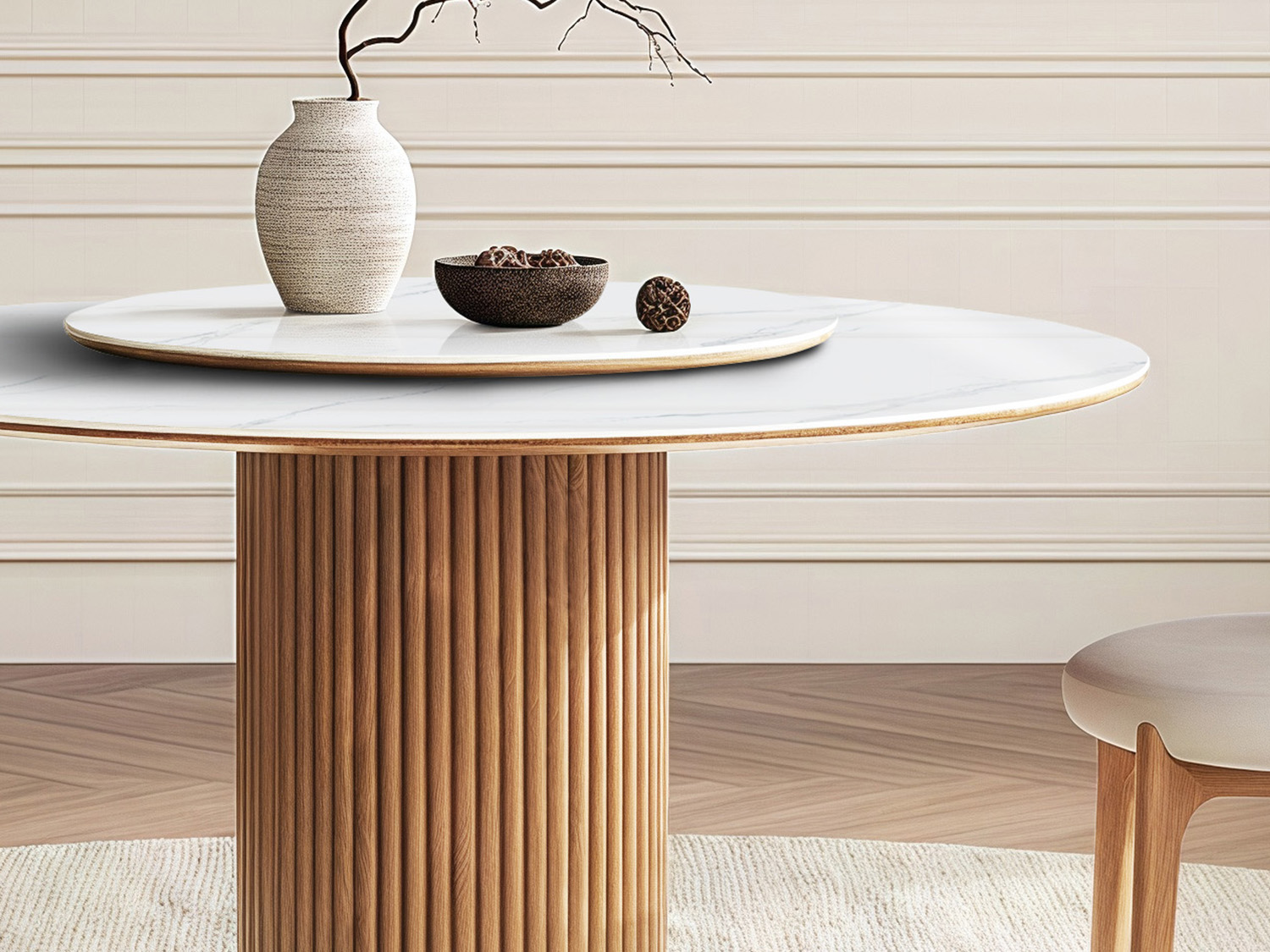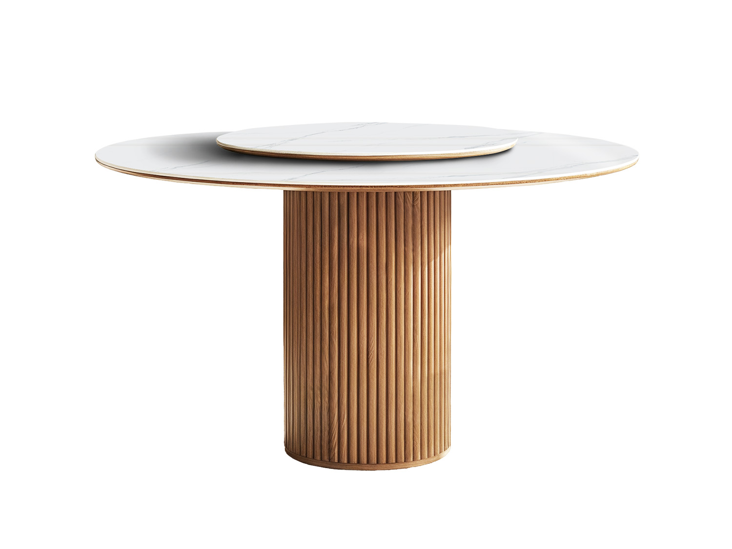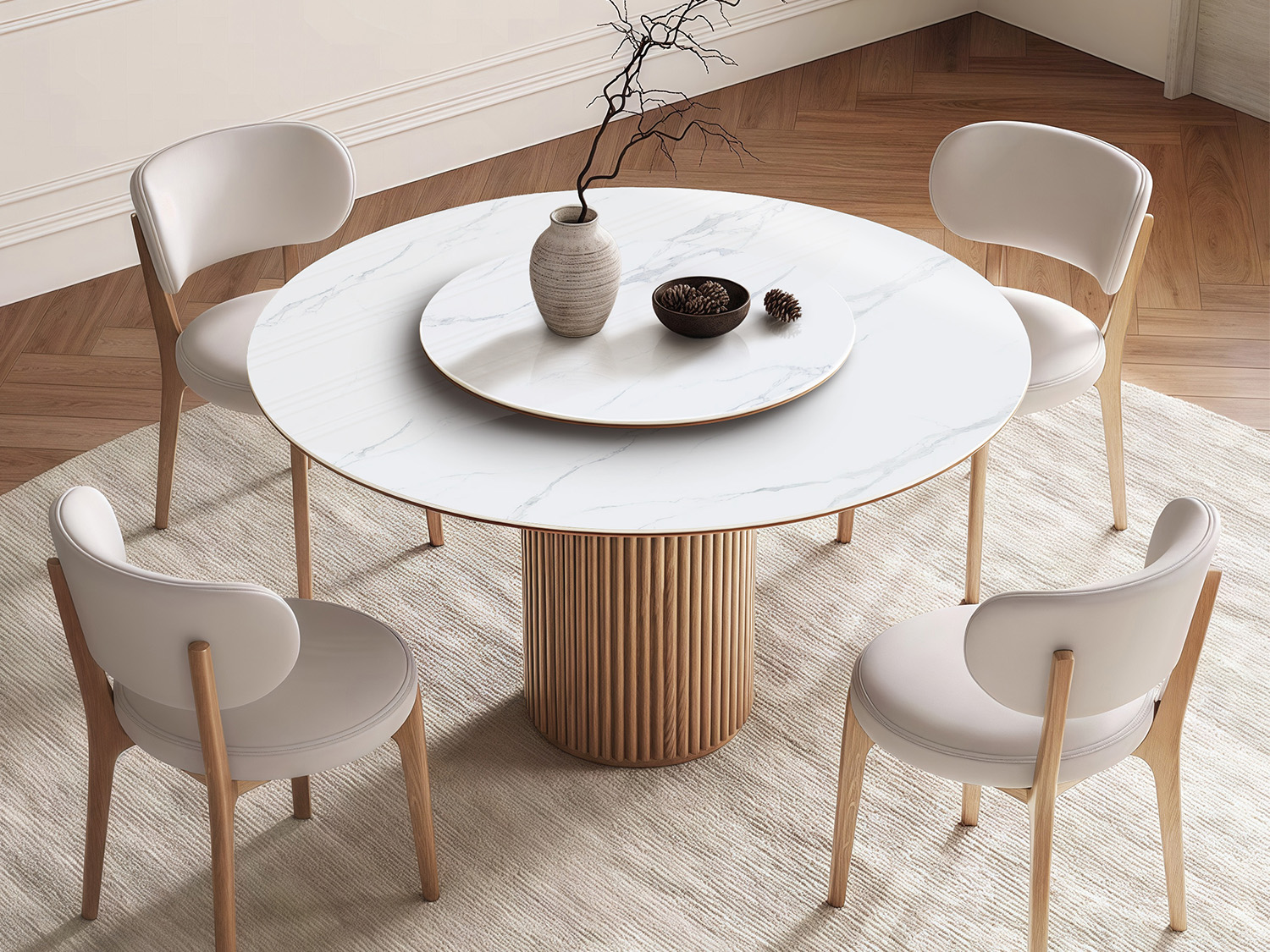 Nordic simple dining room wood frame dining table designer style luxury hotel villa round walnut dining table and chair set