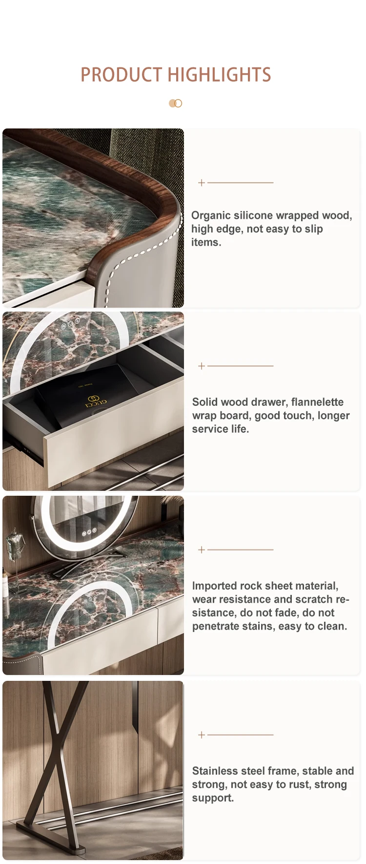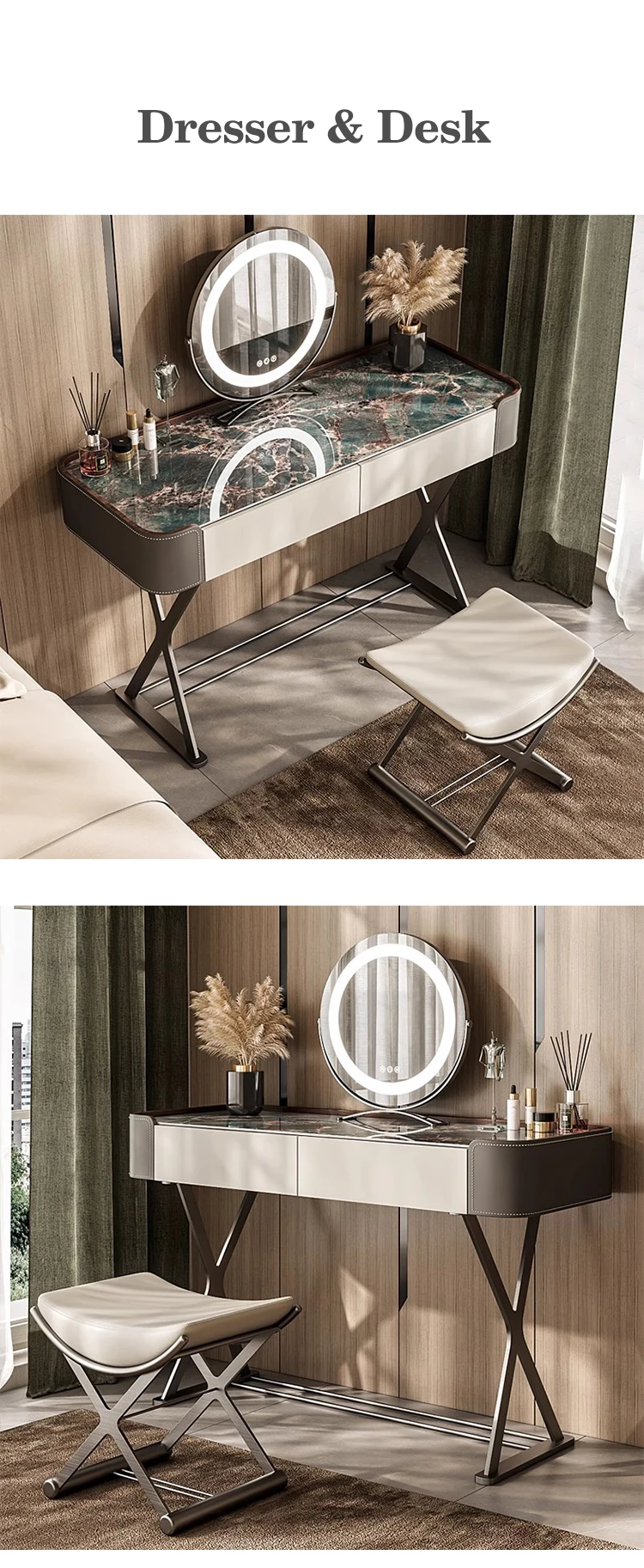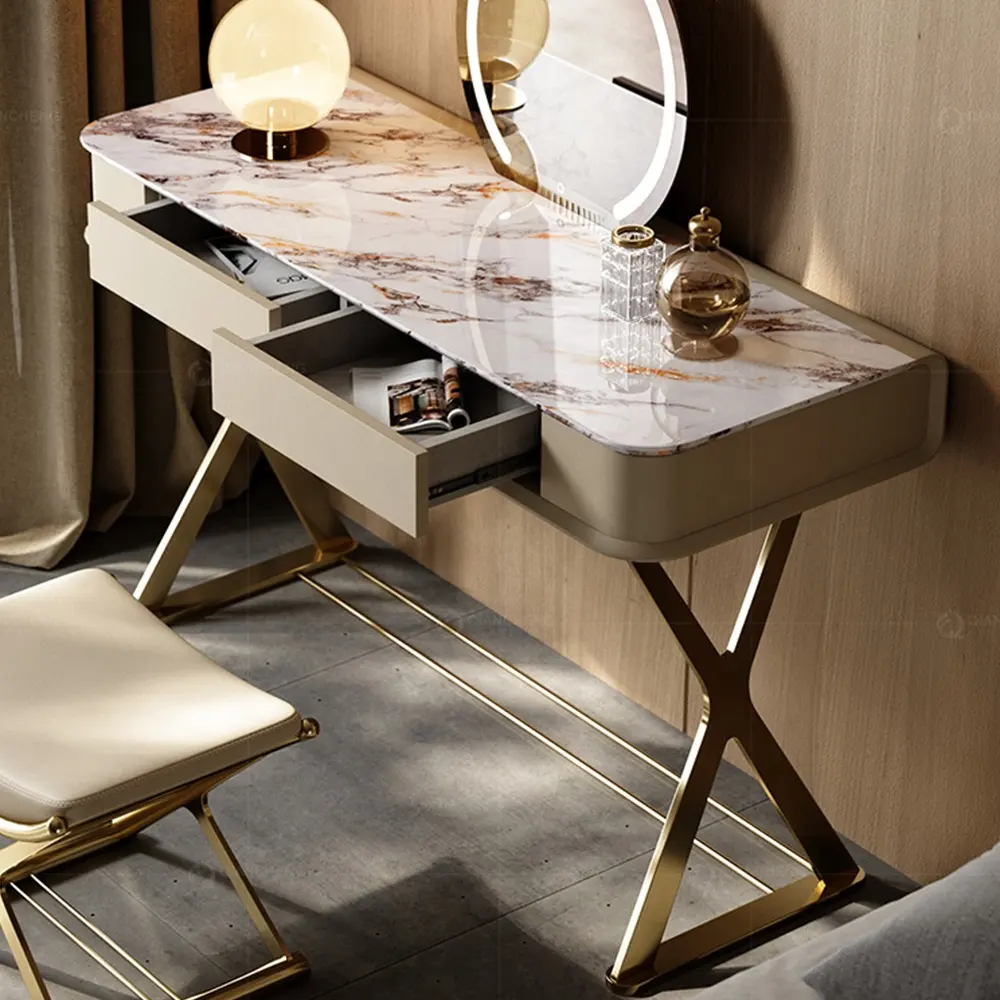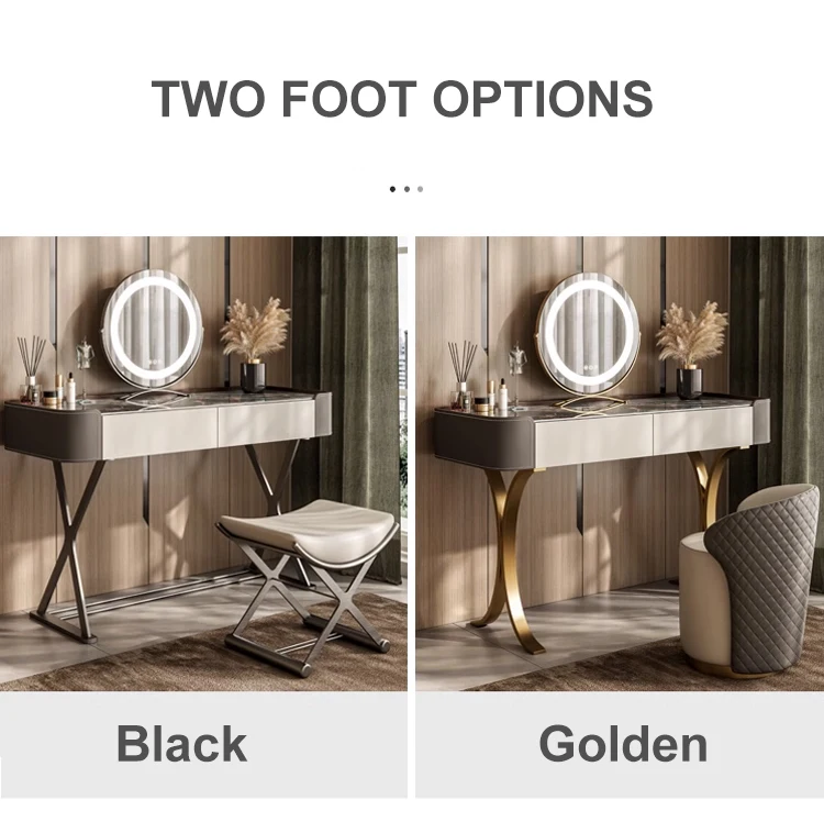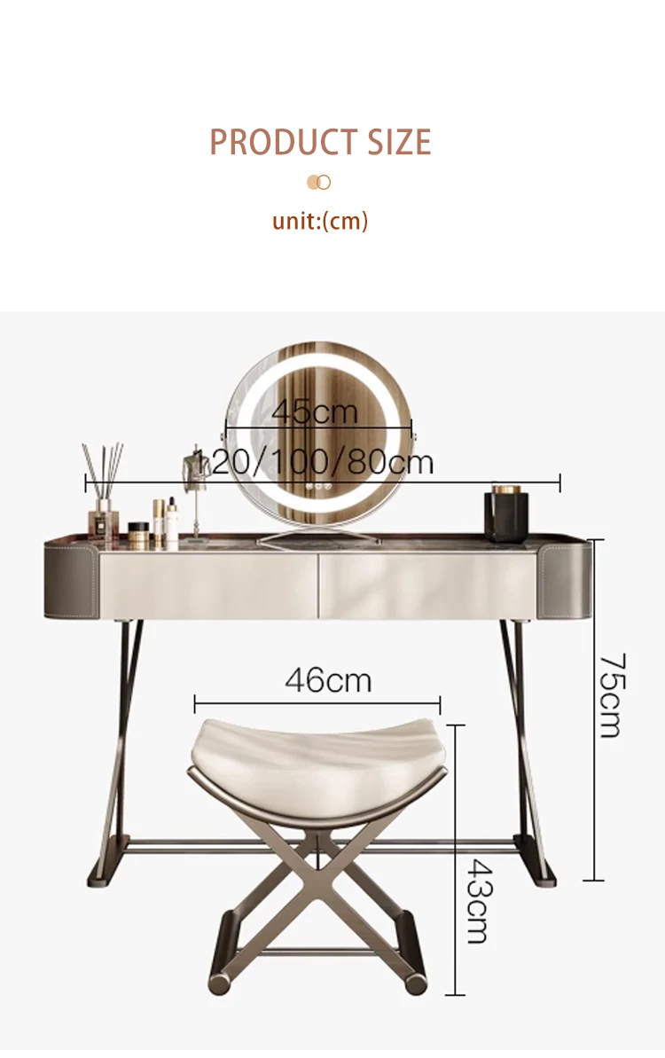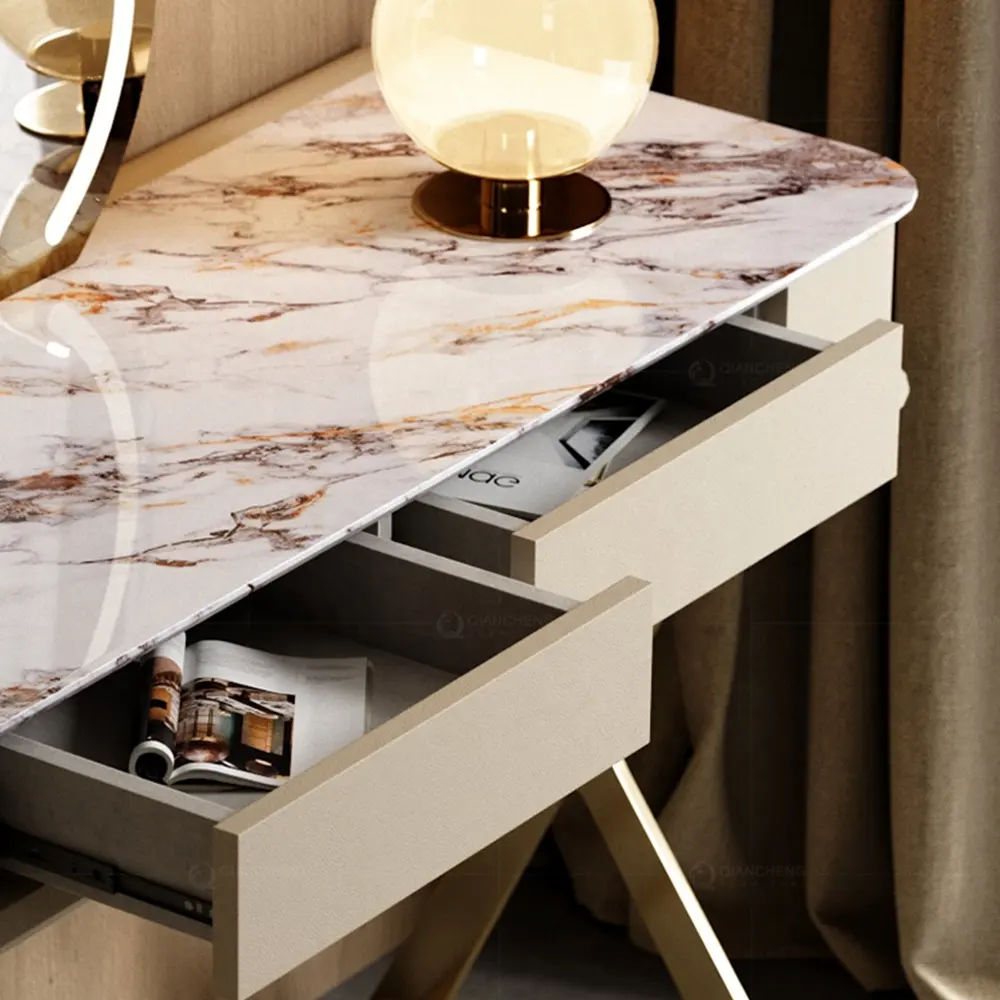 Italian Light Luxury Slate Small Bedroom Dresser with Storage Cabinet Modern Leather And Metal Frame Makeup Table
