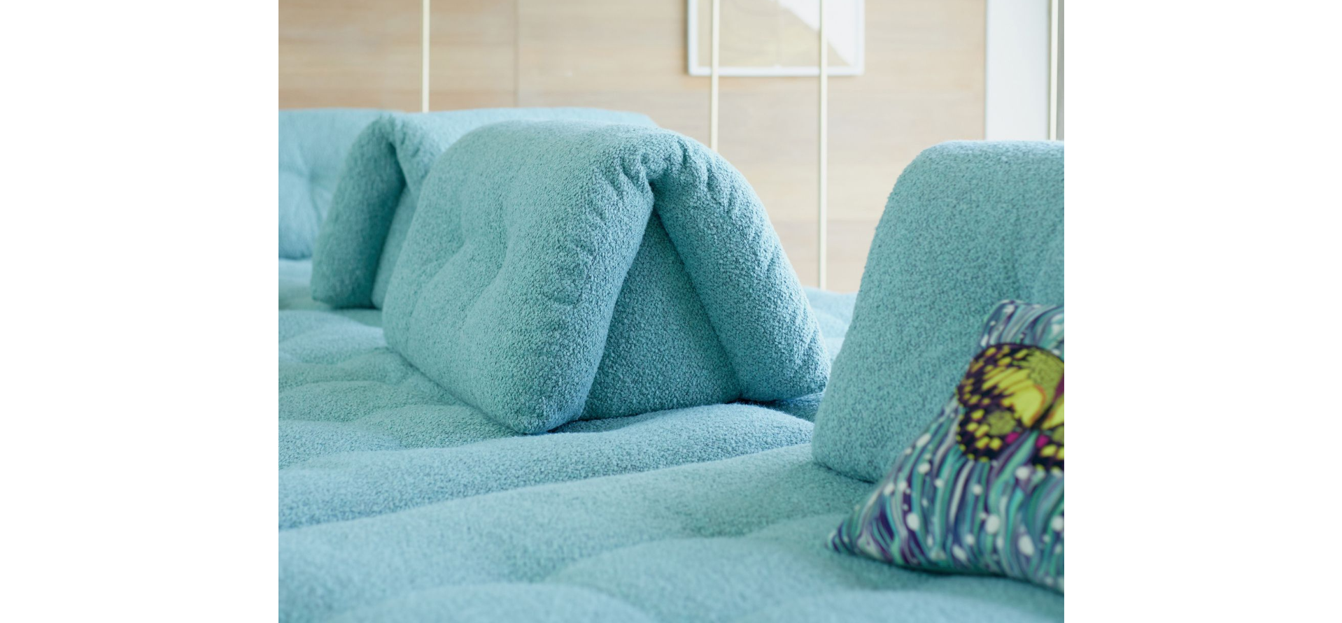 The CONVERSATION sofa allows you to place and move the backrests however you like. It includes various padded seat and back cushions that are completely modular, allowing you to create perfectly customized support for sitting, lying down, reading, or chatting.