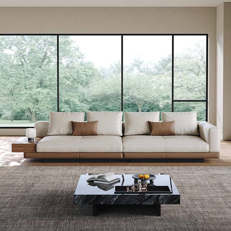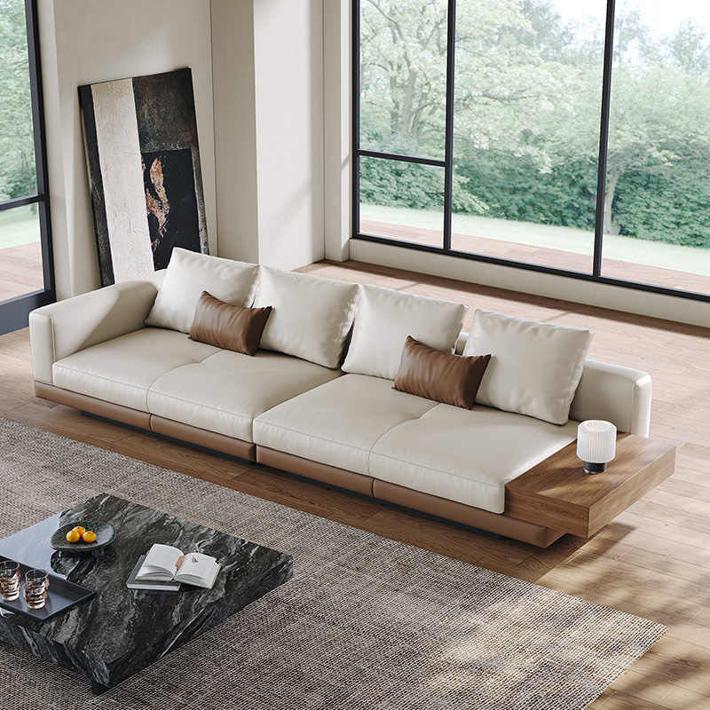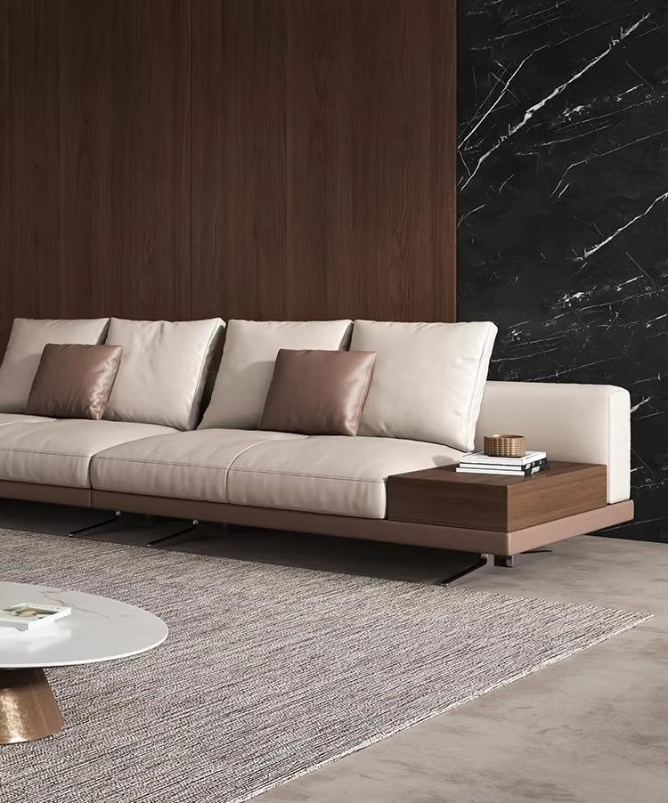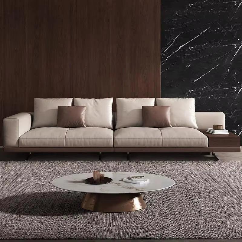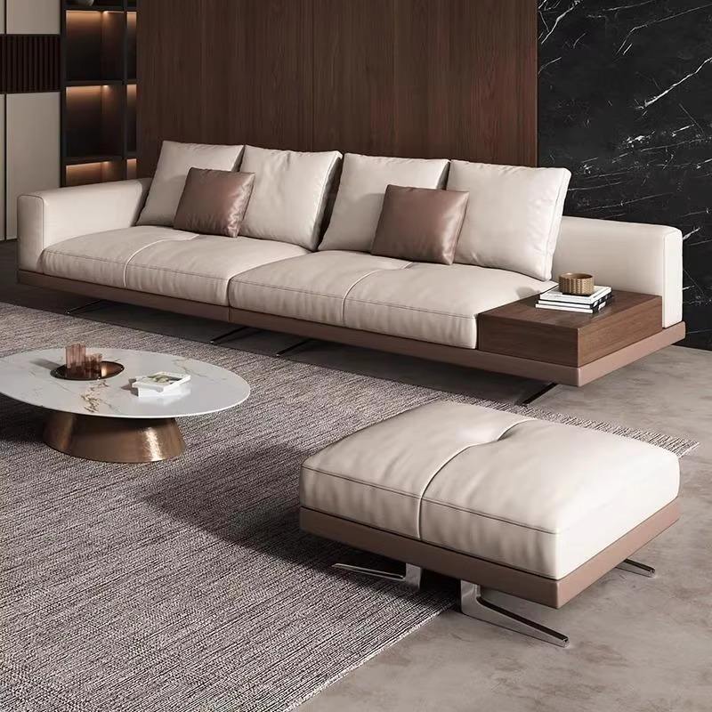 CEO Furniture Factory Hot Sales Italian Modern Minimalist Large Flat Floor Villa Straight Row Sofa High-End Leather Sponge Filling Sofa Couch Set