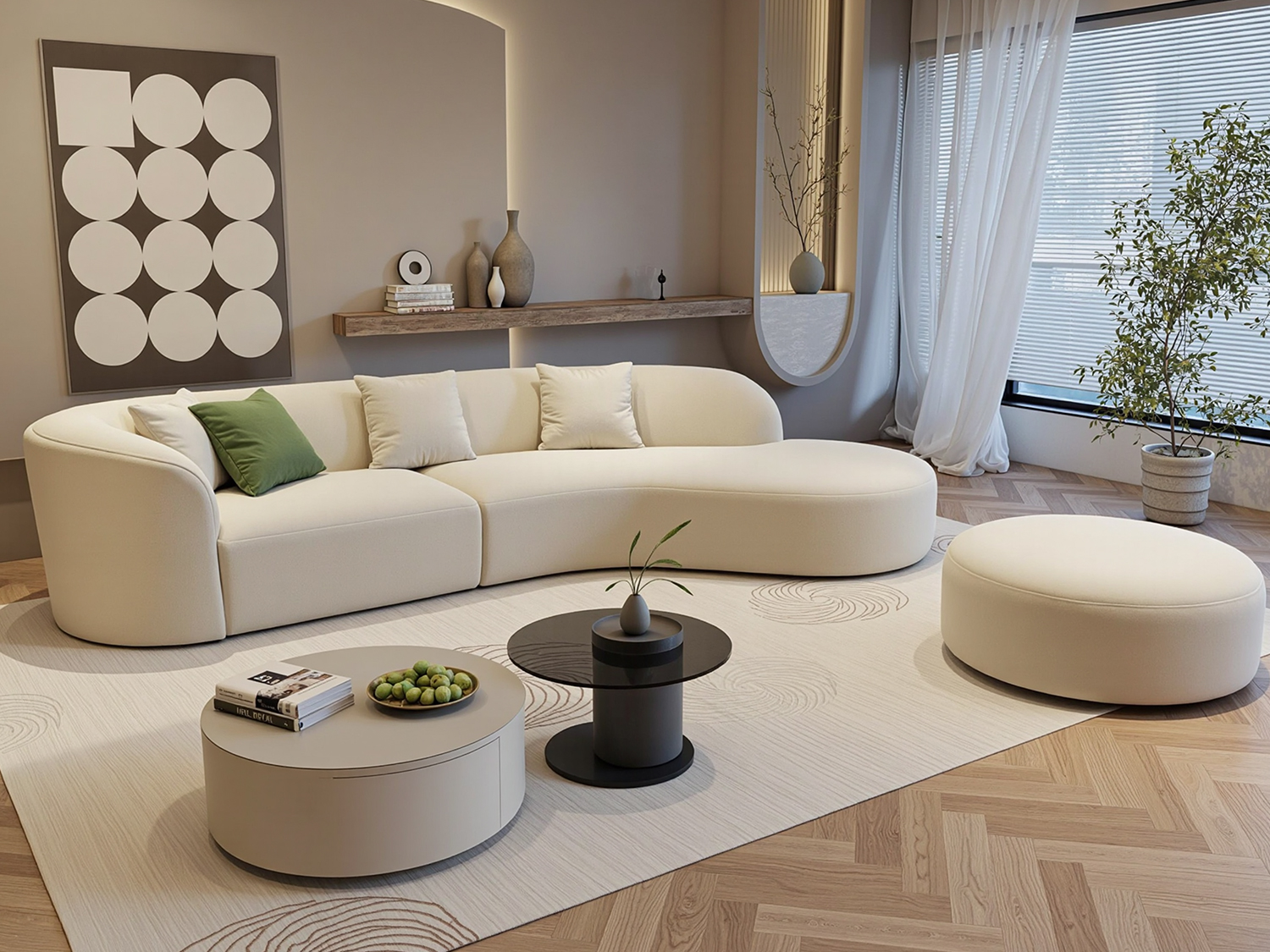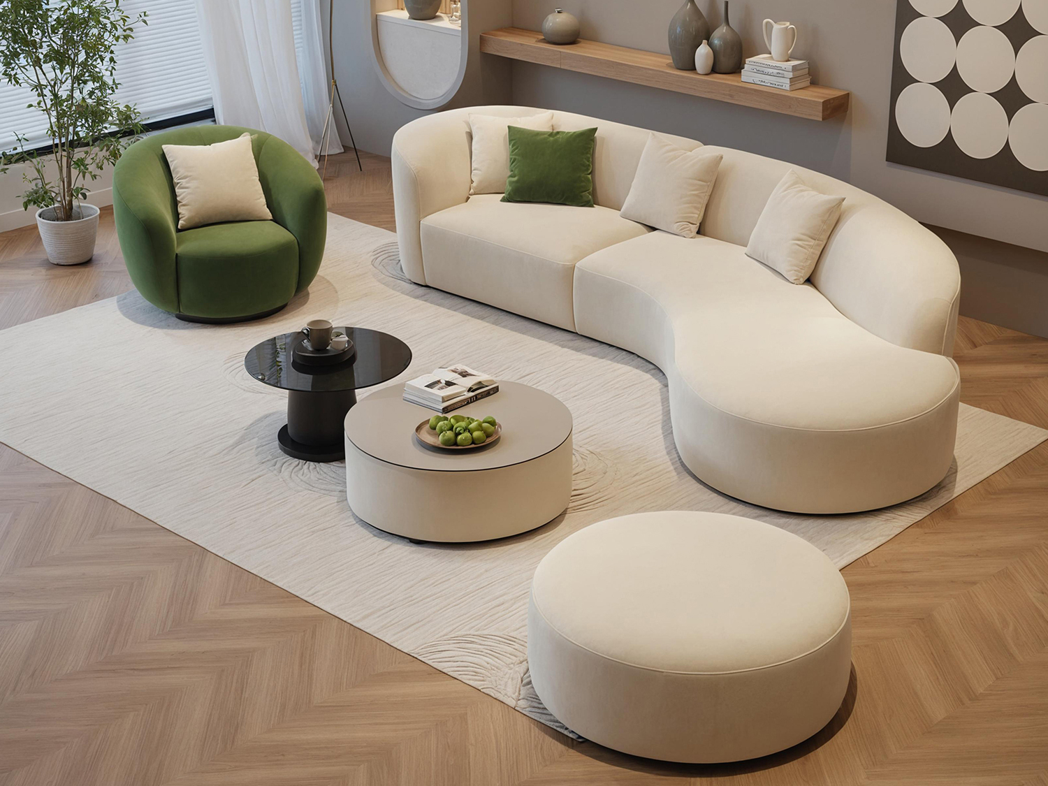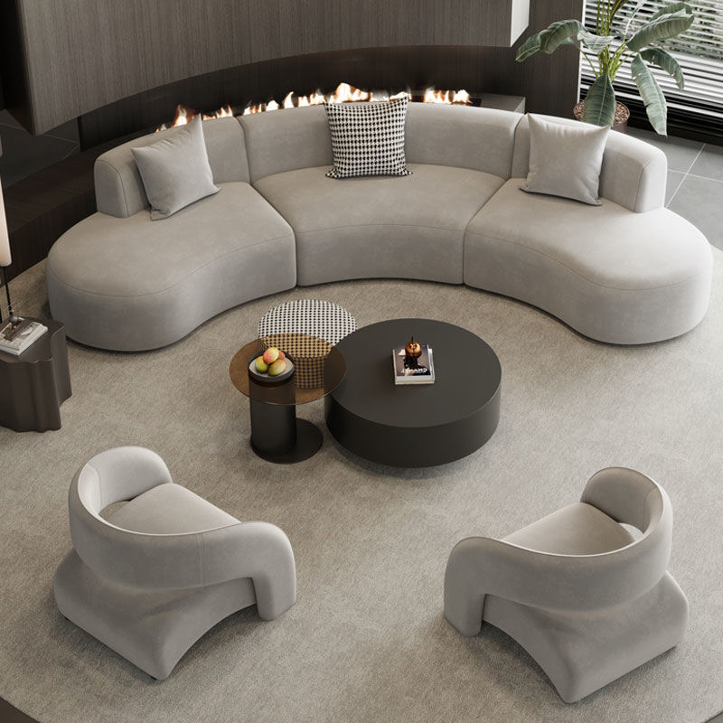 Luxury Modern Style Living Room Interior Curved Sofa & Lounge Chair Set Sofa Set Furniture Living Room